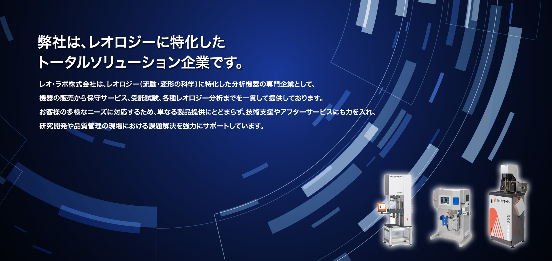 レオ・ラボ株式会社は、レオロジー(流動・変形の科学)に特化した分析機器の専門企業として、機器の販売から保守サービス、受託試験、各種レオロジー分析までを一貫して提供しております。