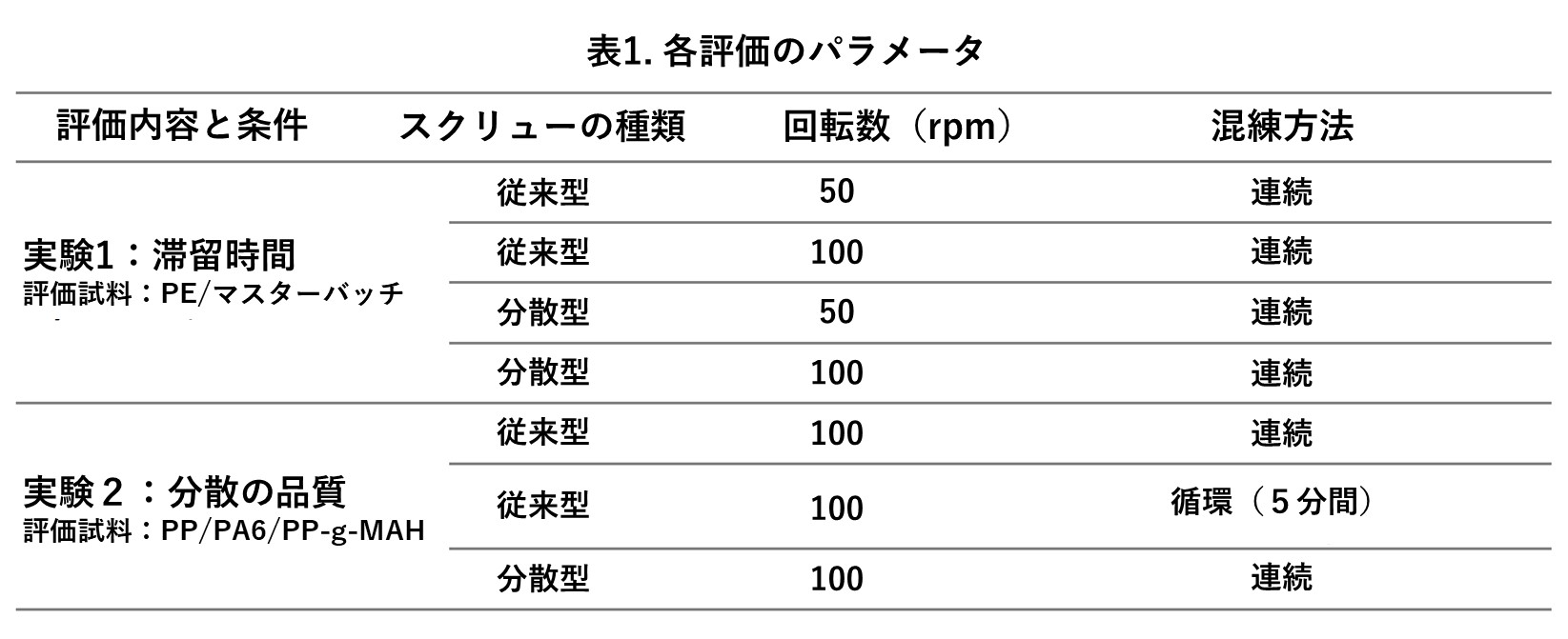 各実験の内容を表1にまとめました。
